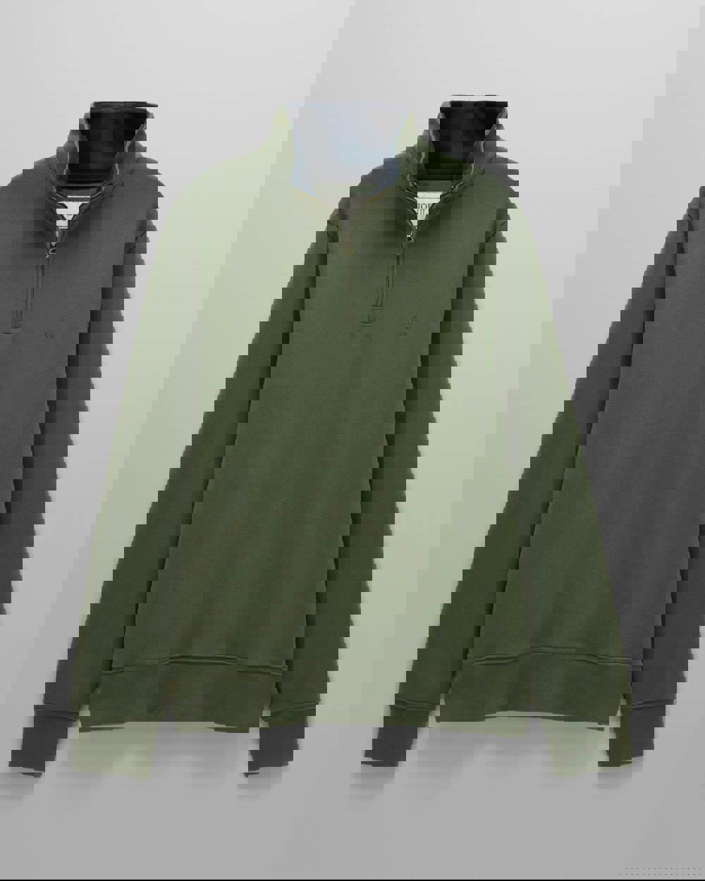 The fine French ribbed fabric ensures a soft hand feel, a quarter zip fastening with metal zip offers a classic touch and a contrasting collar facing adds interest.