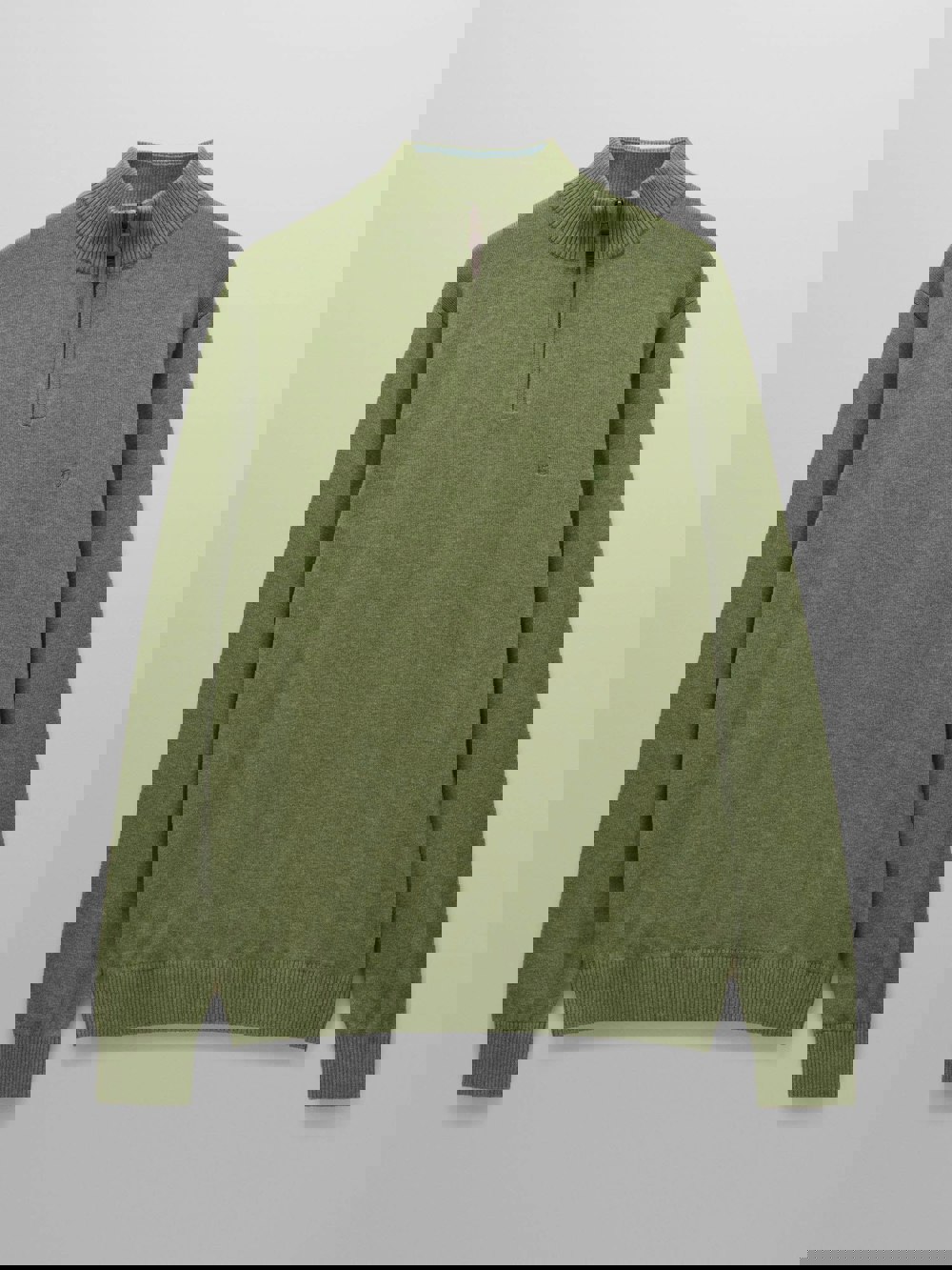 One of our best-loved men's styles, this quarter zip jumper is crafted from soft yet substantial cotton and is comfy enough for layering and yet dapper enough to wear on its own. The contrast back-neck is ribbed, as are the hem and the cuffs. We recommend pulling it over a shirt for ultimate style, warmth, and comfort. Perfect for those smart-casual occasions that can be tricky to dress for.