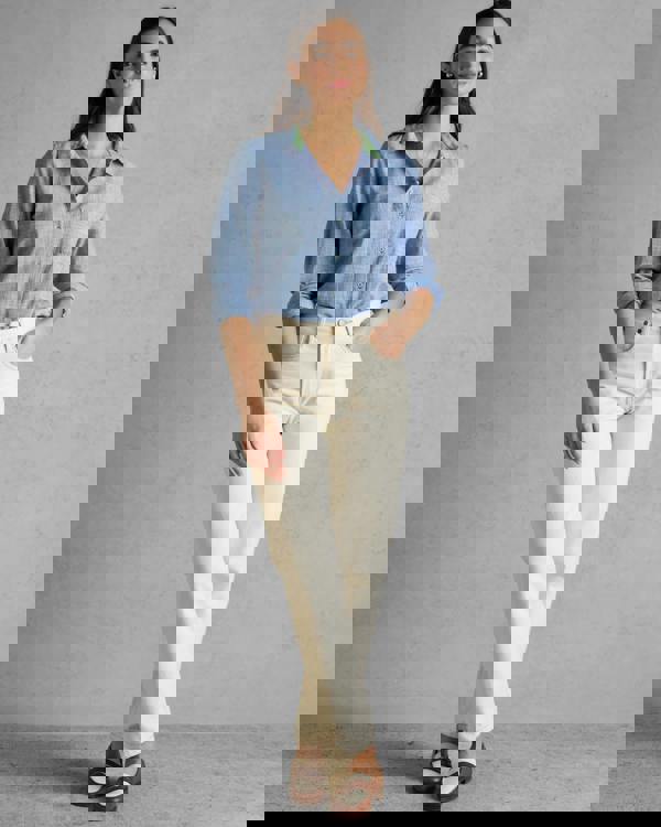 Ida is a staple for your spring and summer wardrobe. Slightly tapered with a straight shape from the chest to the bottom hem, it's a great throw-on-and-go style. Made from 100% cotton, it has a button down fastening giving you versatile ways of wearing and button cuffs that can be turned up or down. The curved hem ensures when it's styled un-tucked it looks neat and maintains a flattering silhouette. Finished with a single chest pocket and a box pleat to the back.