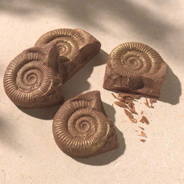 These ammonite chocolate-shaped fossils have been beautifully handcrafted by our artisan chocolatiers from smooth Belgian milk chocolate and dusted with edible gold dust. Made with the finest attention to detail they make a wonderful chocolate gift that will melt in your mouth! Perfect for any budding archaeologists.