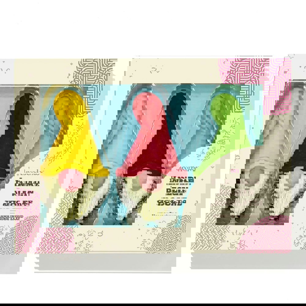 Treat yourself and your loved ones to these irresistibly adorable Chocolate Gonks! Handcrafted from high-quality, delicious milk and white Belgian chocolate, each of the three cuties is meticulously hand-painted for a unique touch. These darling Gonks are the perfect way to spread joy and delight this spring.