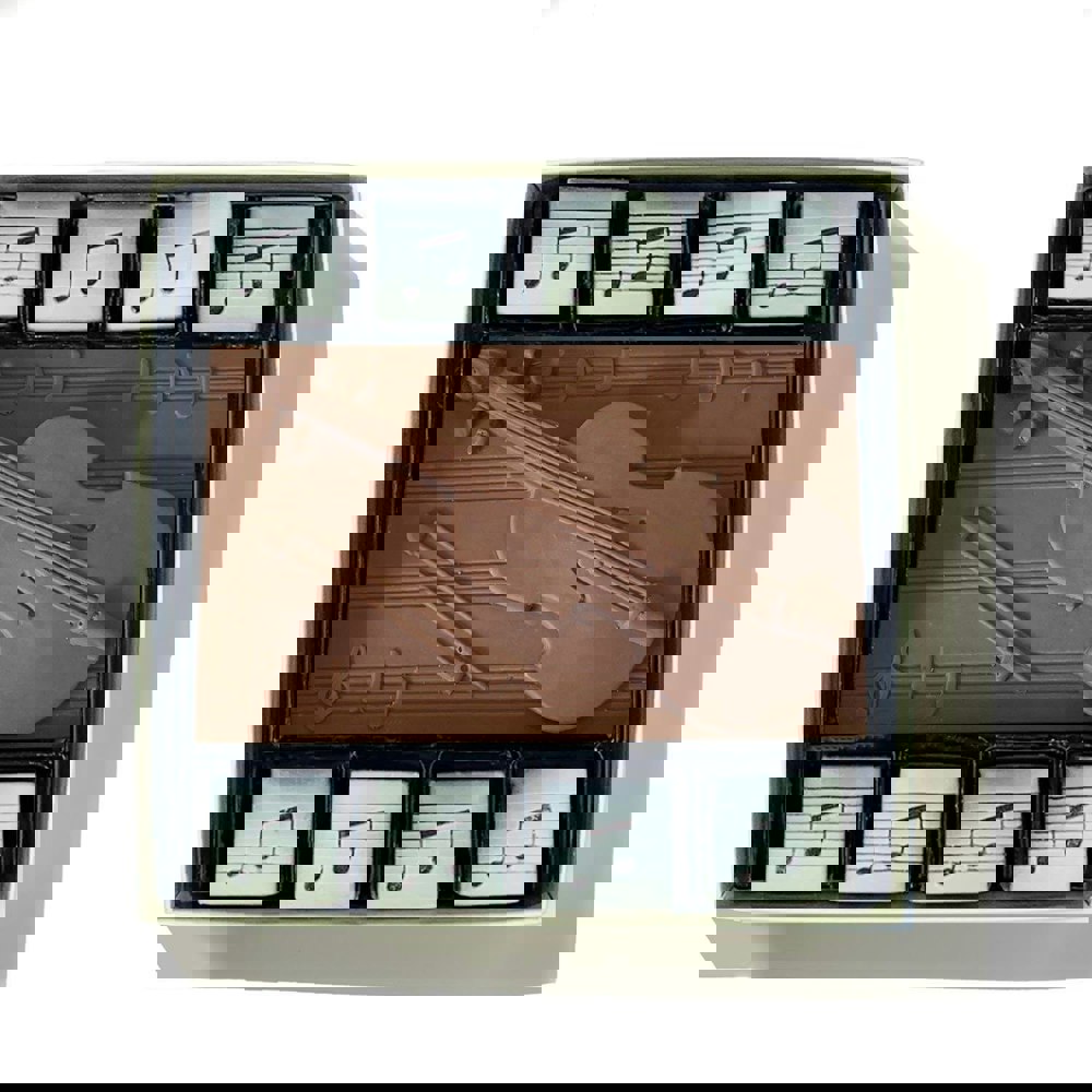 Handcrafted by our artisan chocolatiers from the finest milk, white and dark Belgian chocolate, this chocolate violin surrounded by eight chocolate musical notes will have you singing from the rooftops! This stunning chocolate box will make a perfect chocolate gift for musicians, music teachers, and singers everywhere.