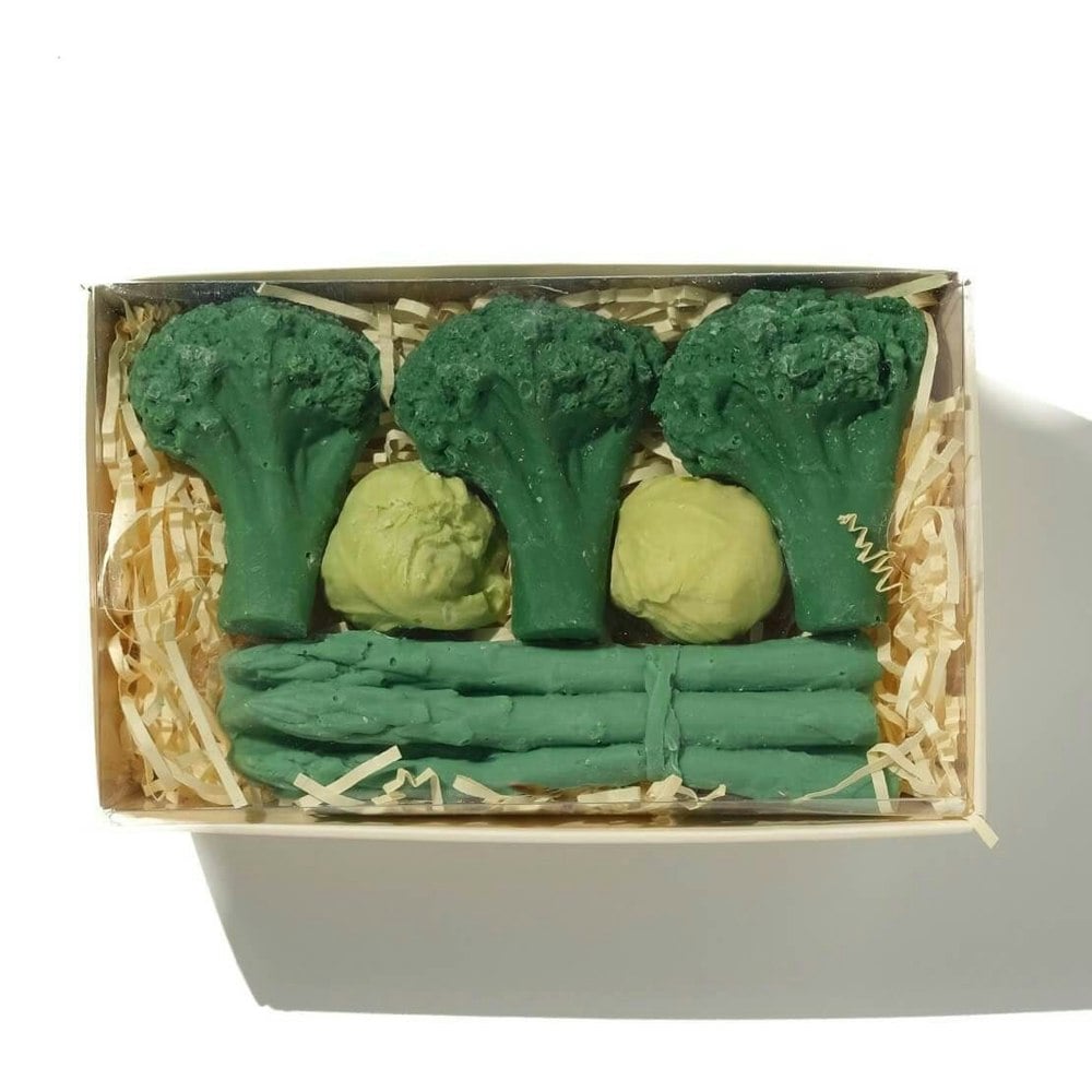 Experience a delightful way to enjoy your five a day with our exquisite chocolate vegetable selection! Crafted by skilled artisan chocolatiers from the finest white Belgian chocolate, this enticing punnet features two rich Brussels sprouts, three crunchy broccoli stems, and a fresh bundle of asparagus.