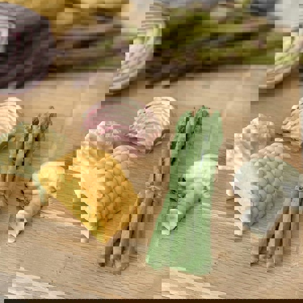Each punnet contains five different family favourites, reimaged in delicious Belgian chocolate: creamy cauliflower, vibrant sweetcorn, crunchy red onion, rich mushroom, and a crisp bundle of asparagus.