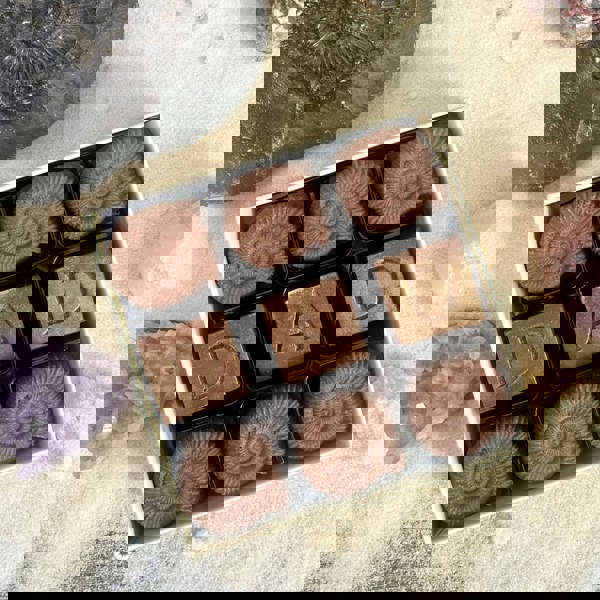 This cheeky gift contains chocolate-shaped fossils have been beautifully handcrafted by our artisan chocolatiers from smooth Belgian milk chocolate and dusted with edible gold dust.