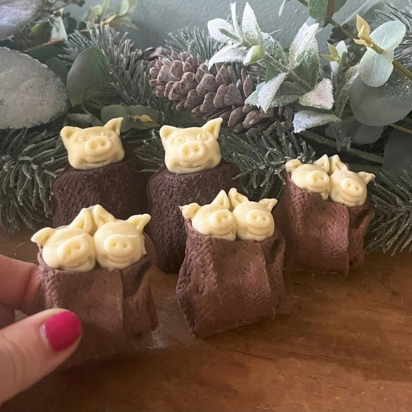 Meet the newest additions to our family, with a choc on choc twist, these pigs in knitted blankets are certainly for Christmas.