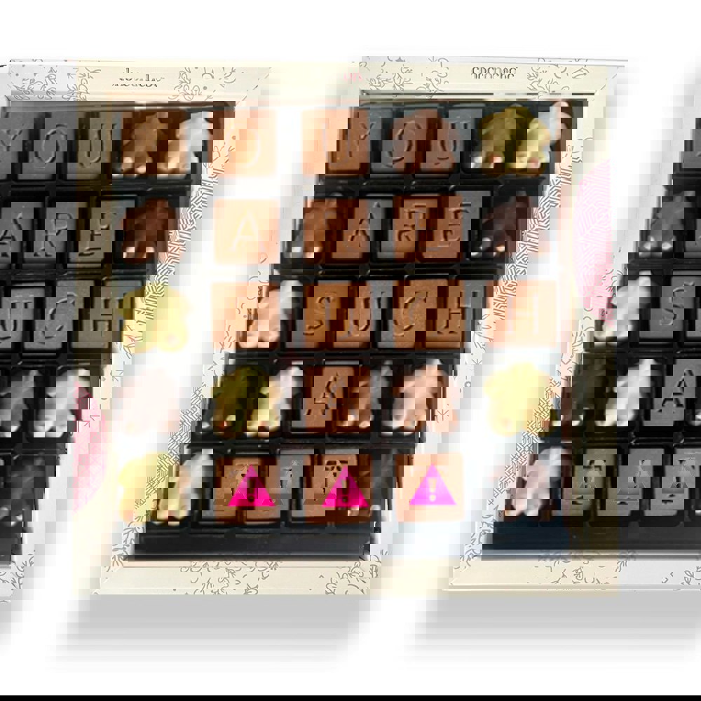 This cheeky assorted message box contains twenty-five delicious Belgian chocolate pieces! These entertaining chocolates are ideal for someone who likes a bit of banter, certain to make a friend or loved one smile!