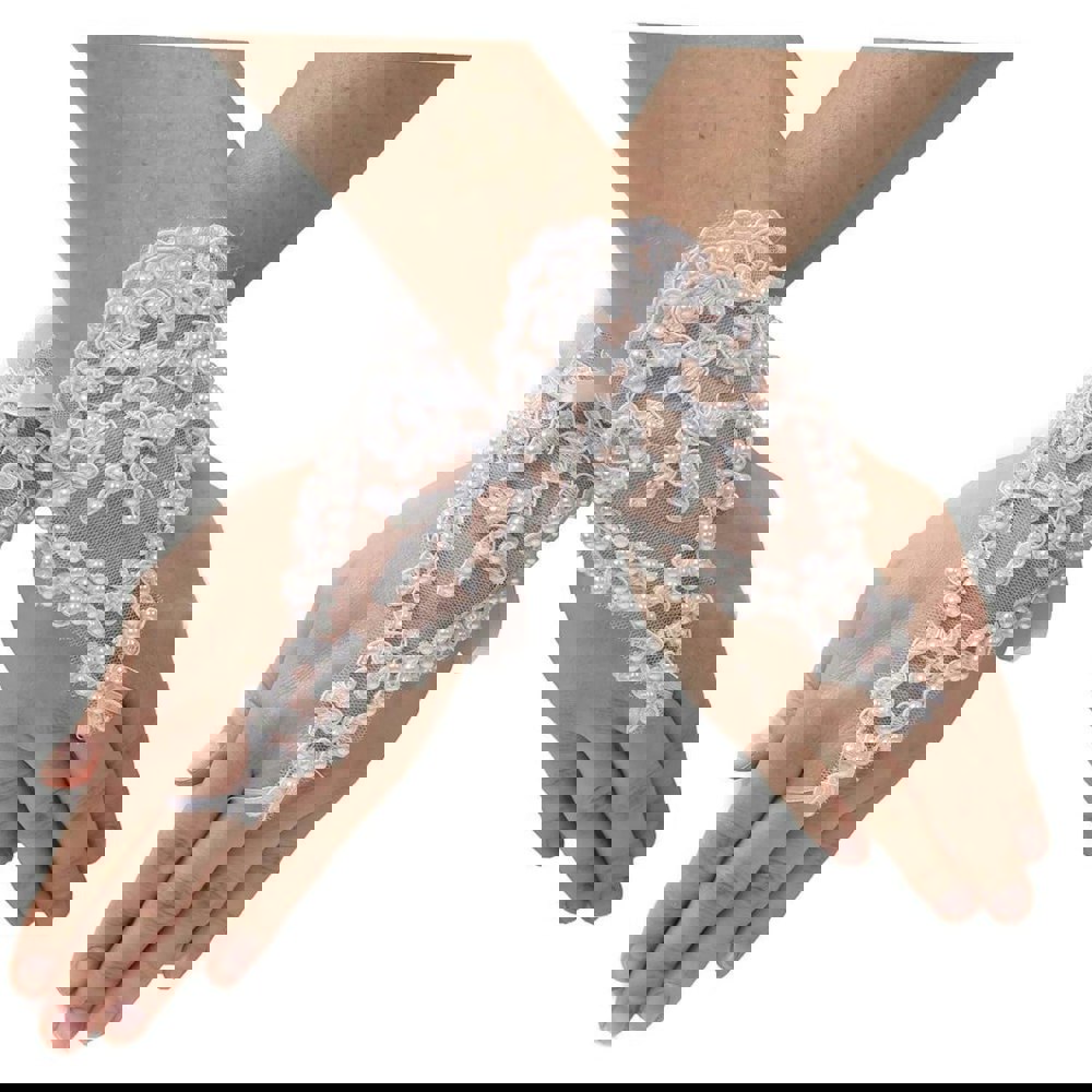 Elegant pearl and lace fingerless gloves are the perfect accessories for communion.