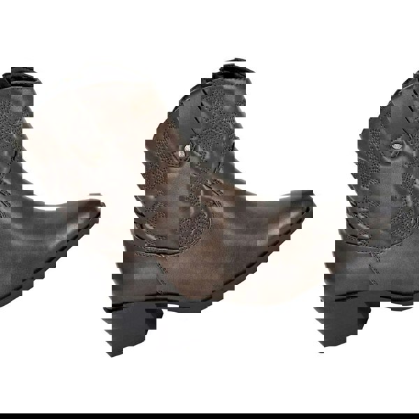These Cipriata Bertilla ankle boots come in a dark brown burnished finish with a patterned design. The ankle cut is paired with a round toe and a block heel for a structured silhouette. An inside zip works alongside a slip-in entry for straightforward on-and-off wear.