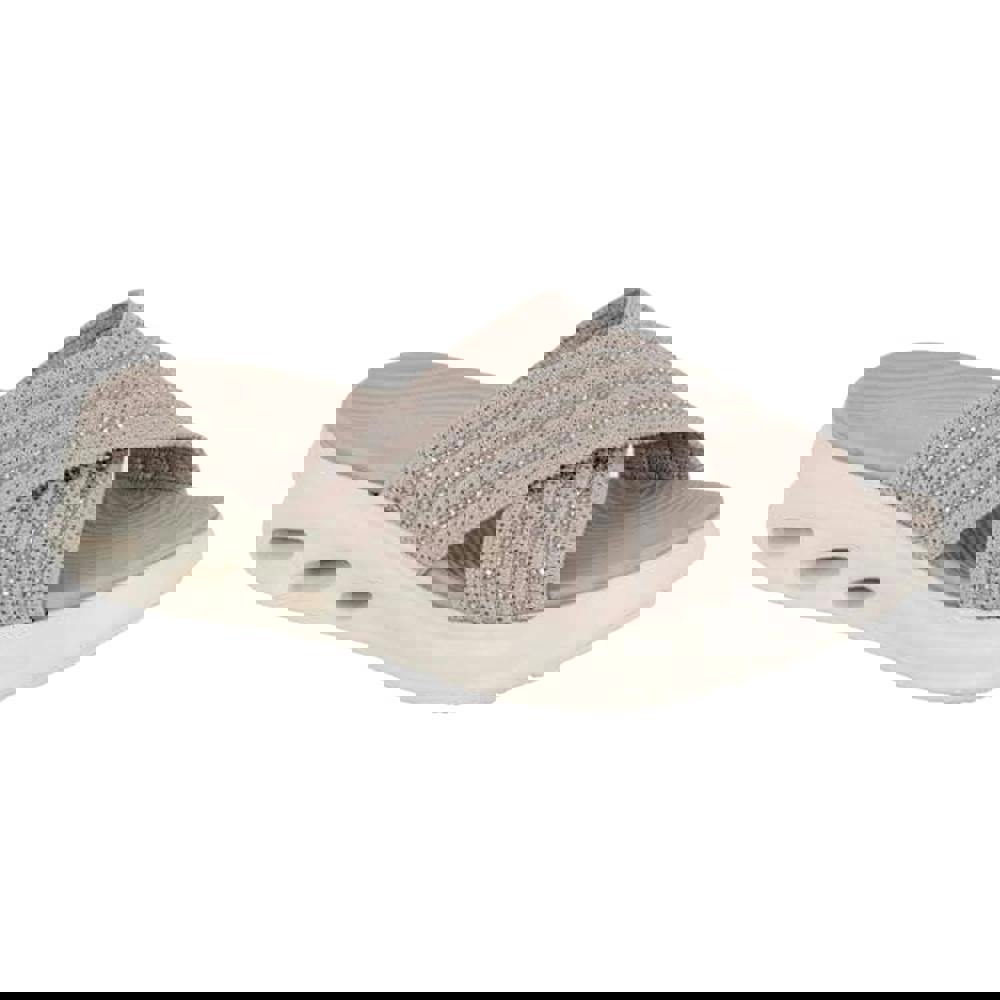 Cipriata Elina mule sandals in grey with a slip-on design and an open toe. The mid wedge heel creates a lifted profile, while the criss-cross upper adds structure and detail. Sparkle accents complete the look for a distinctive finish.