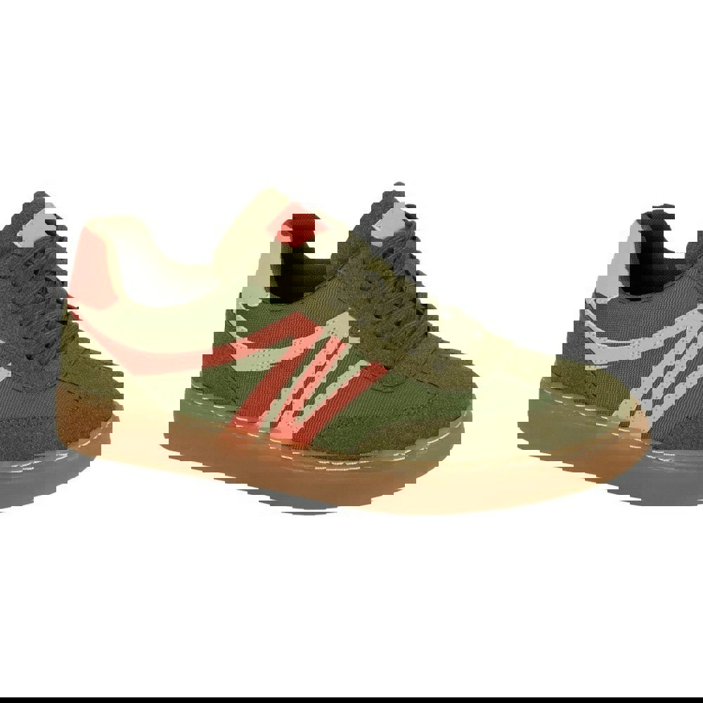 Cipriata Redea trainers are finished in khaki green with a two tone look and a round toe. The upper combines microsuede with other materials and PU (polyurethane), paired with a textile lining for a clean internal finish.