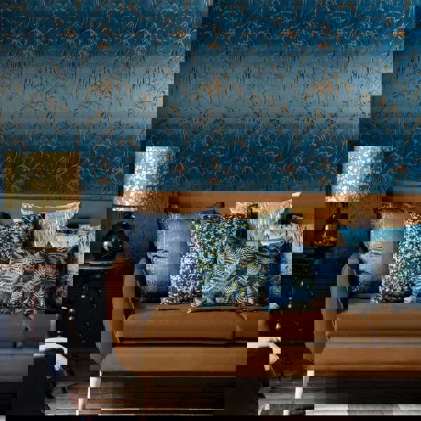 Copper metallic meadow grasses arc gracefully against the midnight blue ombre background of this gorgeous wallpaper. Clarissa created this signature design after spending a whole summer evening photographing grasses in the evening light. This classic print would look beautiful in any hallway, bedroom or living space