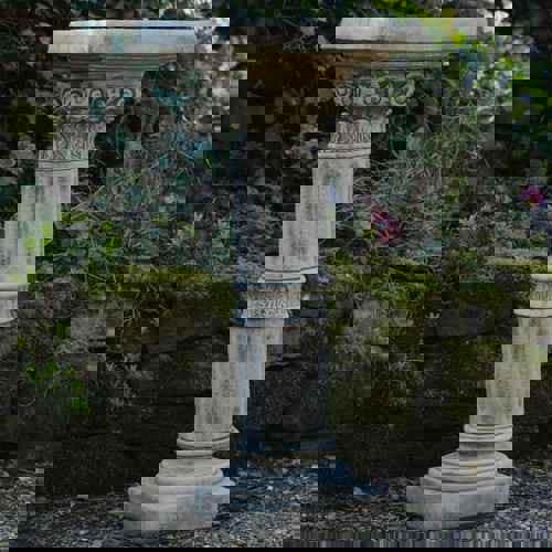 Coming in vintage finish, this elegant garden birdbath features a classy support rod that is decked out in eye-catching Corinthian neat elements. An exquisite pedestal featuring intricately detailed column leads to square basin in a simple yet delicate design. This robustly made concrete birdbath will attract a bit more wildlife and bring an admirable water feature to your garden space.