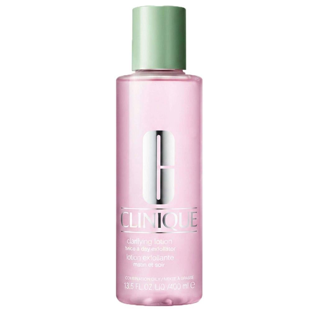 Clinique Clarifying Lotion Twice A Day Exfoliator 3 is a twice-daily exfoliating lotion created for combination and oily skin. Used morning and night, it lifts away pollution, grime and loose flakes to leave skin feeling cool, fresh and cleansed. The formula also removes excess oil and helps to unclog pores, leaving skin ready to receive moisture.