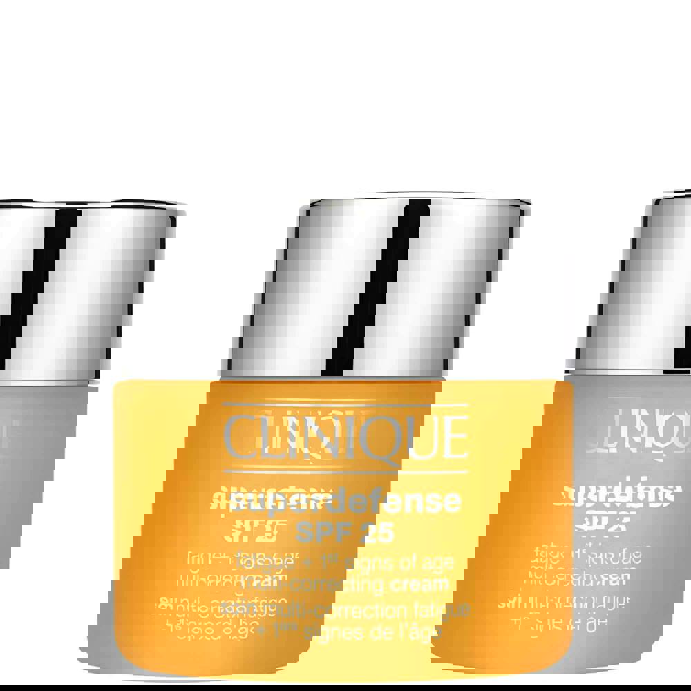 Clinique Superdefense Fatigue + 1st Signs of Age Multi-Correcting Cream is a multi-correcting moisturiser with SPF 25, created for very dry to dry combination skin. It revitalises the look of skin while helping to ease visible signs of ageing, including wrinkles, fine lines, dullness and uneven texture. Stop Signs Technology helps protect against aggressors that can fatigue the skin, supported by antioxidants and vitamin E for an added level of defence. Designed for daytime use, it delivers 12 hours of support as part of a morning routine.