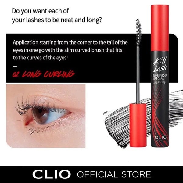 To Use: Apply mascara, starting from the base of curled lashes and up with a side to side motion. Angle the brush to use the tip to accentuate hard to reach areas.