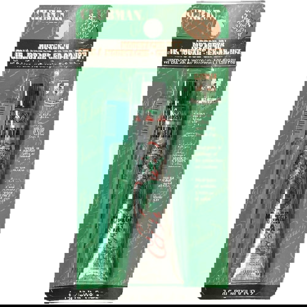 Clubman Pinaud Moustache Wax colours and controls your moustache, beard, sideburns and eyebrows. Comes with an applicator comb/brush.
