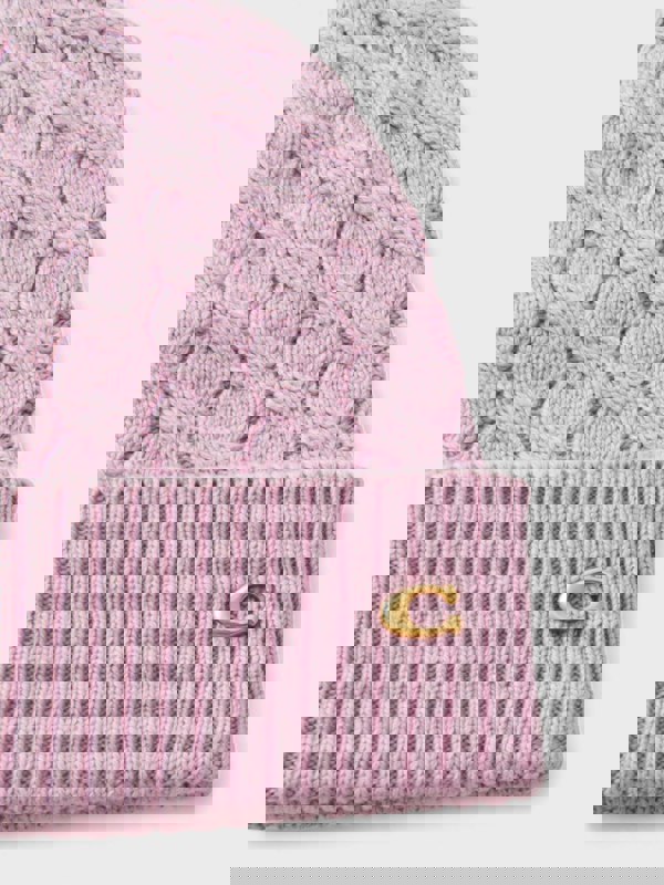Elevate your winter wardrobe with this refined Coach Cable Beanie in a sophisticated faded pink hue.