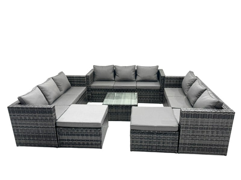 Rattan Garden Outdoor Furniture Set 9 Seater Rattan Garden Sofa Set with 2 Armchairs Big Footstool Light Grey Mixed