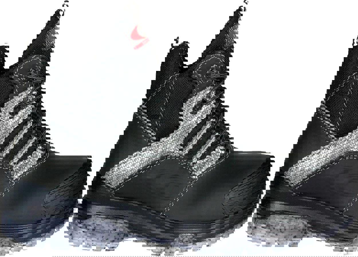 Footbed:EVANIT, made of EVA and nitrile special compound, with high bearing capacity and variable thickness (12mm - 8mm - 3,8mm). Thermoformed, anatomic, punched and coated with highly breathable fabric. Antistatic thanks to a specific treatment on the surface and to seams made of conductive yarns