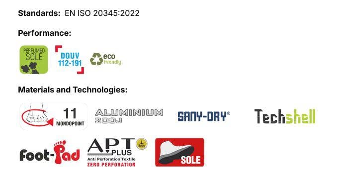 Upper: TECHSHELL, innovative and extremely sturdy fabric, abrasion and tear resistant, water repellent and breathable