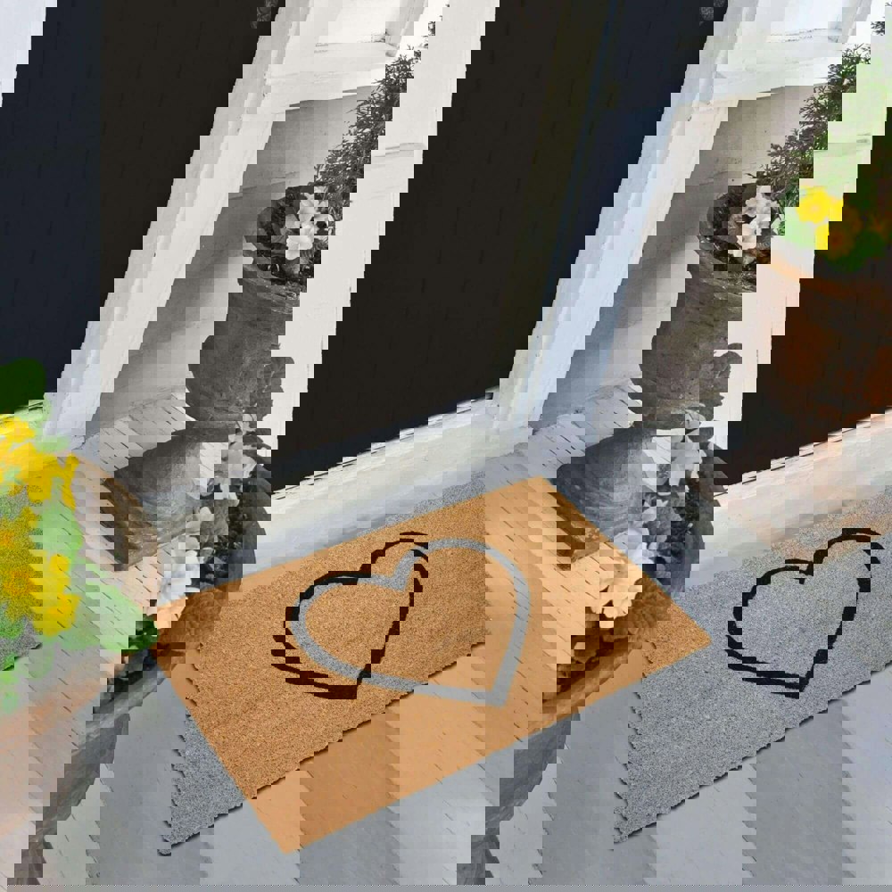 Give your doorway a sweet and functional upgrade with the Coir Heart Outlined Doormat. Crafted from natural coconut fibres and supported by a sturdy PVC non-slip base, it helps trap dust and debris while offering a warm, stylish greeting to your home.