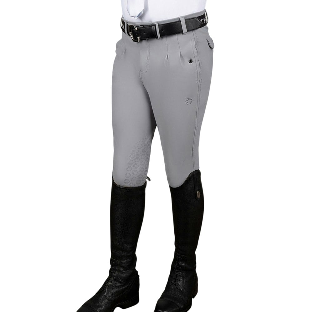The Coldstream Boys Westfield Competition Breeches in grey are designed for competition wear, offering a clean, plain look. Made with 4 way stretch, they are created to support ease of movement and a comfortable fit during riding.