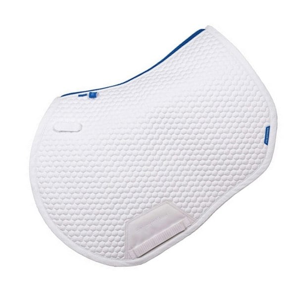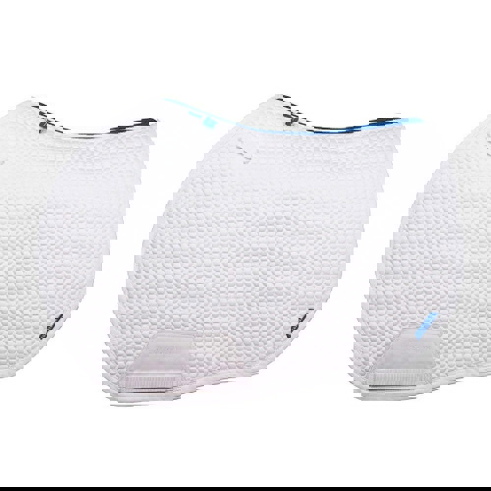 The Coldstream Chatton Close Contact Horse Saddlepad is designed for close contact riding, with a honeycomb design in a white and blue colourway. Featuring airflow and moisture wicking fabric technology, it is made to support comfort during use.