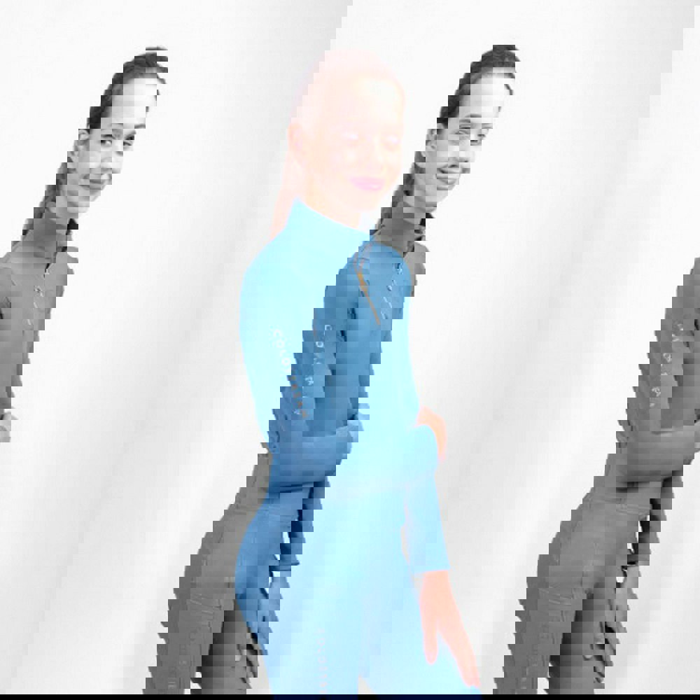This girls’ base layer top comes in slate blue with a tonal logo design. Made in a soft-touch, 4-way stretch fabric, it has a tailored fit and long sleeves for a streamlined shape. A standing collar and quarter zip fastening create a neat finish, while the pull-over style keeps the look clean. Mesh side panels are included, alongside breathable, moisture-wicking fabric technology.