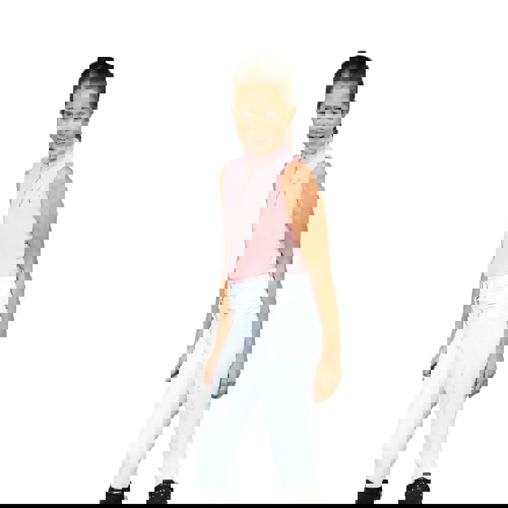 Coldstream Girls Next Generation Cranshaws sleeveless base layer top in blush pink. Made in a soft-touch 4 way stretch fabric with breathable, flexible and moisture wicking fabric technology. A tailored fit and standard neck sit alongside a zip fastening for a clean, streamlined finish.