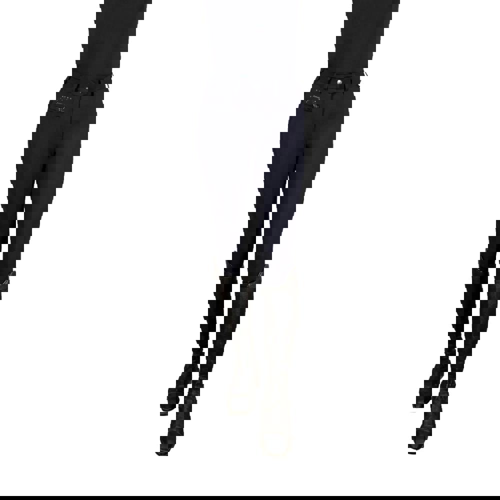 Diamante detailing adds a refined touch, while practical features keep the fit secure and functional. A button fastening with zip fly offers a classic closure, and belt loops allow you to style with your preferred belt. For added stability in the leg, a silicone knee grip helps maintain position, making these breeches a dependable choice for regular training and riding days.