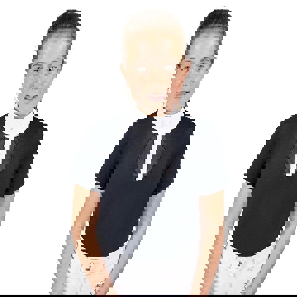 The Coldstream Girls Next Generation Larkhall Diamante Show Shirt in navy is designed with a plain finish and contrast detailing for a clean, considered look. A high-neck silhouette with contrast at the neckline adds definition, while the long-sleeved, extra-long sleeve design offers a streamlined profile.