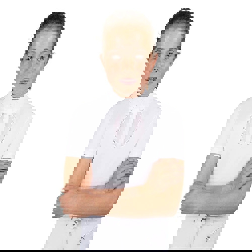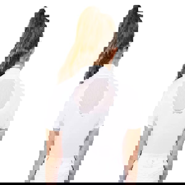 The Coldstream Girls Next Generation Larkhall Diamante Show Shirt in white is designed with a plain finish and contrast detailing for a clean, polished look. A high-neck silhouette with contrast at the neckline adds definition, while the buttoned cuffs with contrast detailing provide a neat, structured finish.