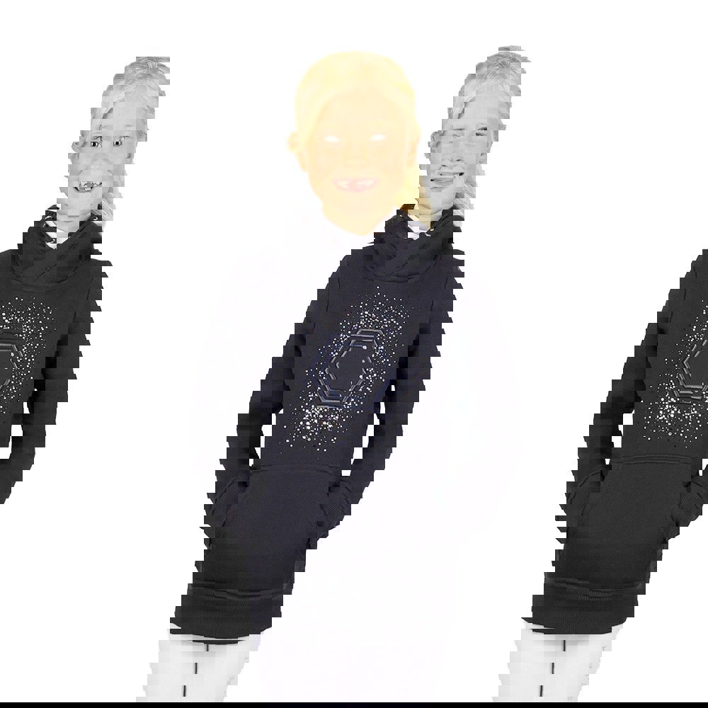 This navy hoodie has a soft-touch fabric and a soft lining. The design includes diamante and glitter detailing with a logo finish. A grown-on hood and drawstring complete the hooded neckline, while the pull-over style keeps the look clean and simple.