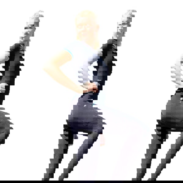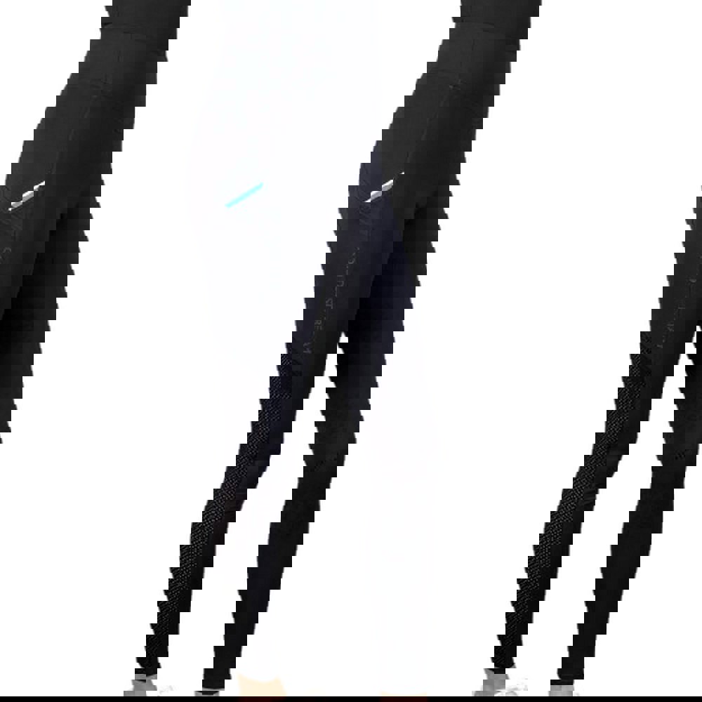 These navy riding tights feature a curved waistline for a shaped fit and a full silicone seat. For practical storage, they include 2 mobile phone pockets, helping keep essentials close at hand during riding.