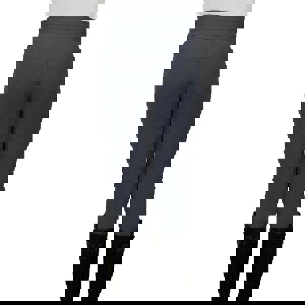 A high-rise, ribbed waistline offers a secure feel, while the pull-on style is complemented by a zip fly and twin button fastening for a neat, structured finish. For added stability in the saddle, these breeches feature a full silicone seat. Two side pockets keep small essentials close to hand, and the use of recycled materials supports a more sustainable wardrobe choice.