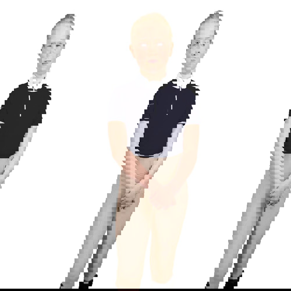 The Coldstream Kids Next Generation Oxnam Competition Show Shirt in navy is designed for young riders who want a smart, streamlined look for competition days. With a tailored fit and a high-neck silhouette, it offers a neat finish that works well under show jackets and other riding layers.