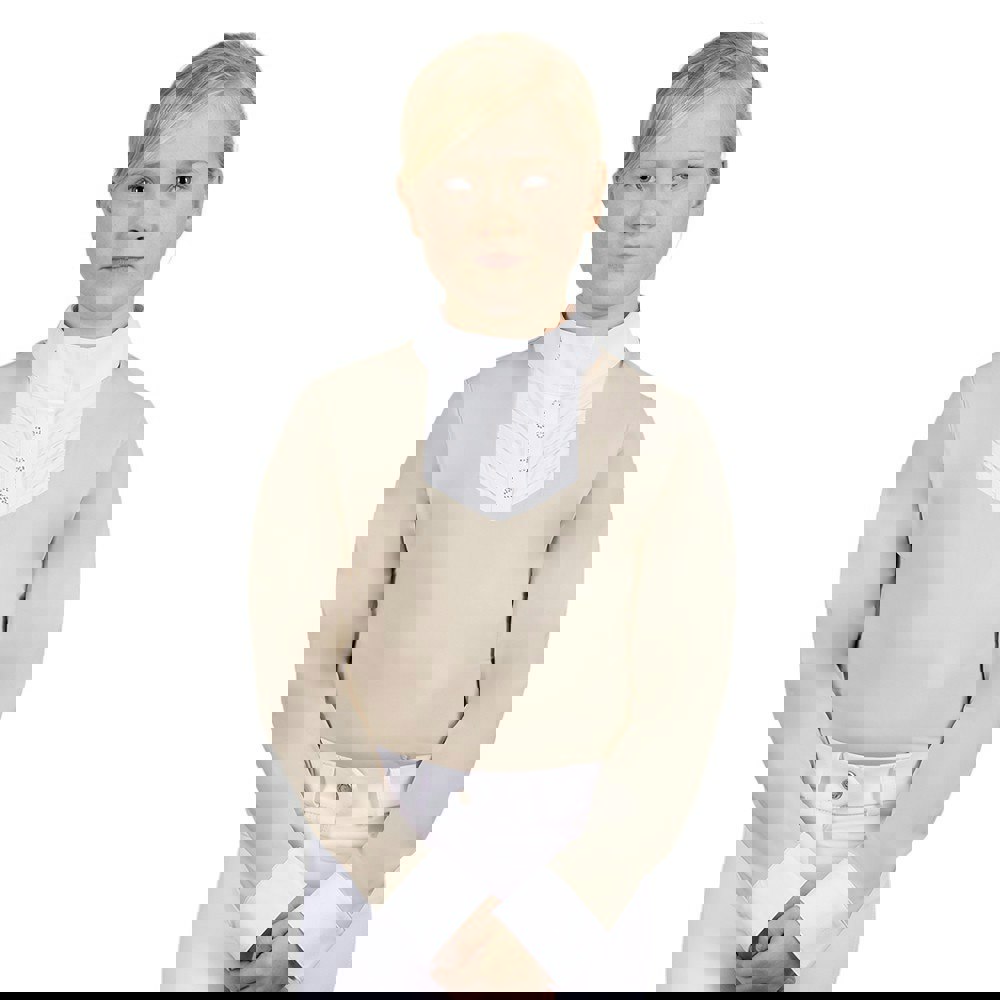 The Coldstream Kids Next Generation Roslin Crystal Ruffles Show Shirt in Latte is a short-sleeved show shirt designed with refined detailing for a smart, polished look. Featuring contrast detail and a standing collar with stud fastening, it offers a neat finish that suits formal riding and competition settings.