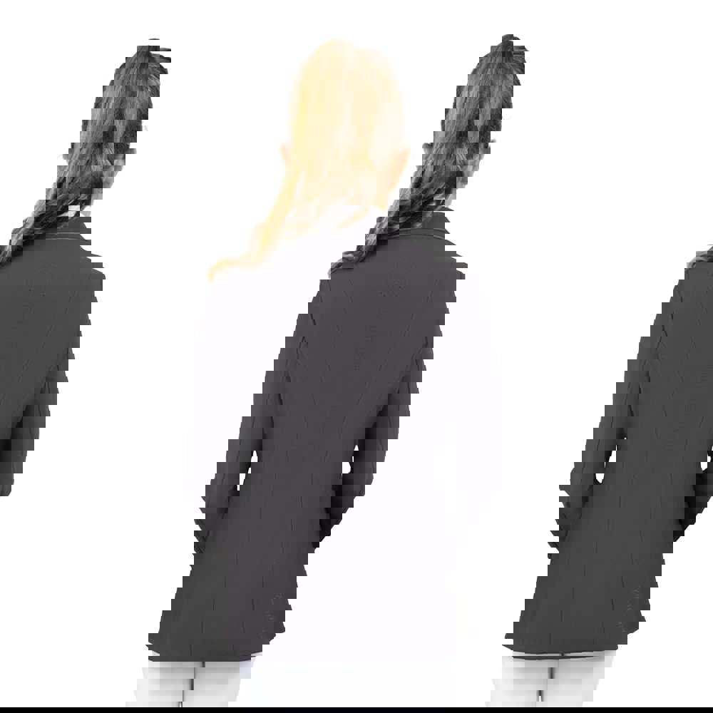 The Coldstream Kids Suede Horse Riding Jacket is designed for young riders, combining a smart printed look with practical details for everyday wear. Finished in charcoal grey, it features a lapel neckline and long sleeves for a classic riding-jacket silhouette.