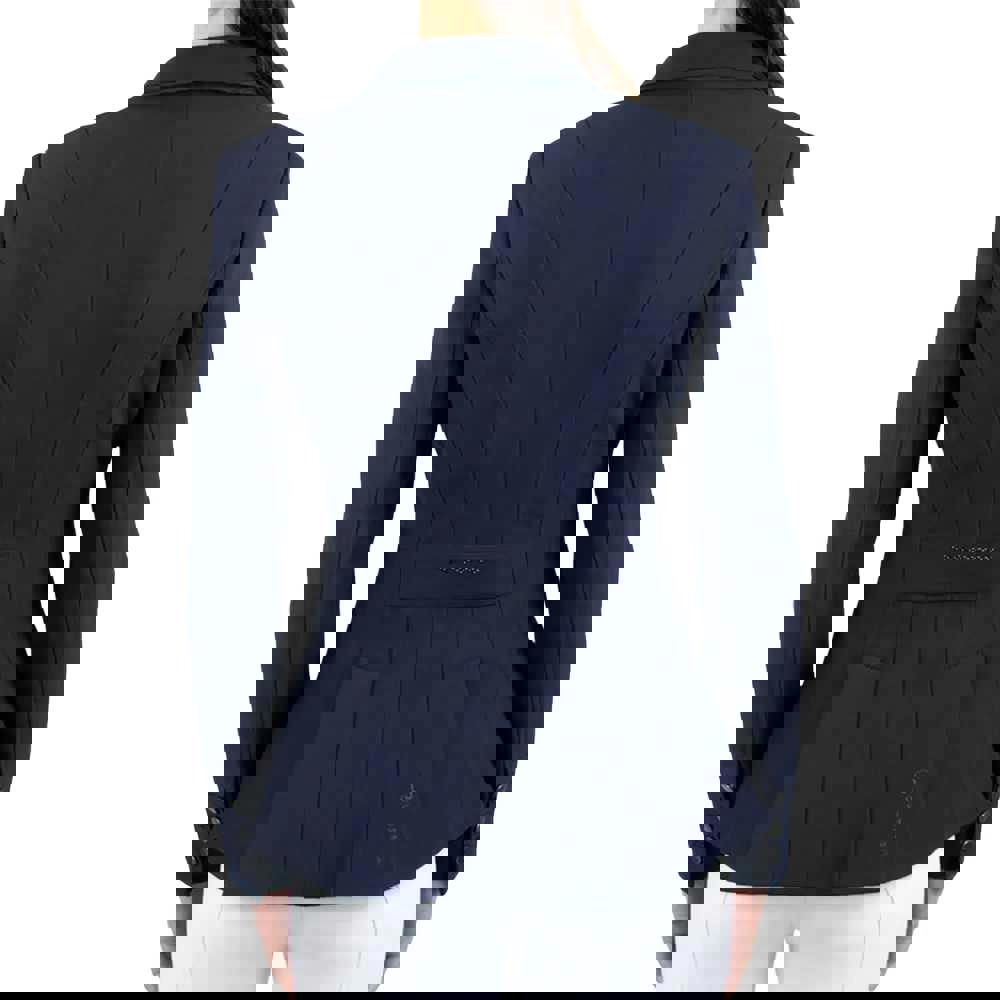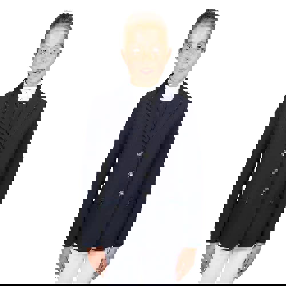 The Coldstream Kids Suede Horse Riding Jacket in navy is designed for horse riding, with a printed finish and perforated detailing for added interest. A lapel neckline and long sleeves create a classic jacket shape, while a button fastening keeps the look neat and secure.