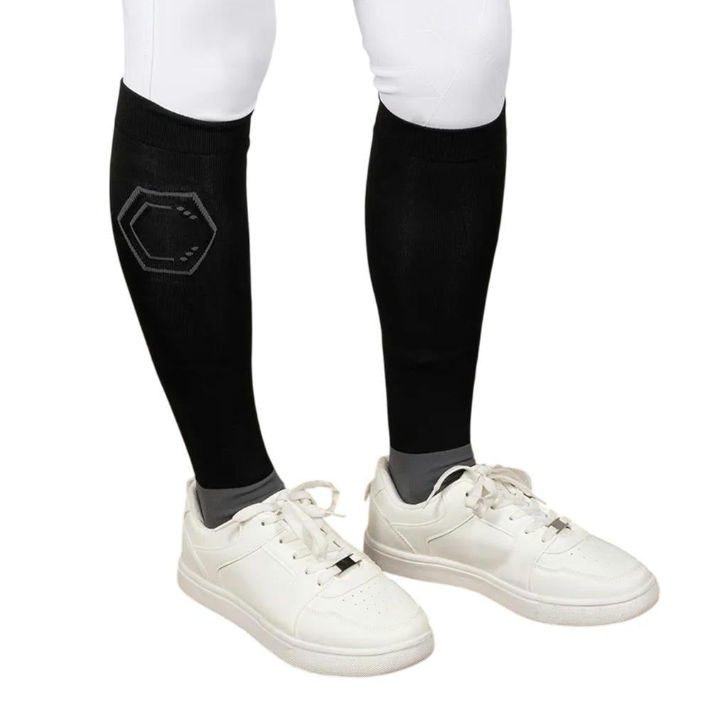 Coldstream Unisex Adult Ancroft Cushioned Riding Socks come in black and grey with a logo design. The construction includes a seamless toe for a smooth finish. A fitted calf and padded foot complete the design.