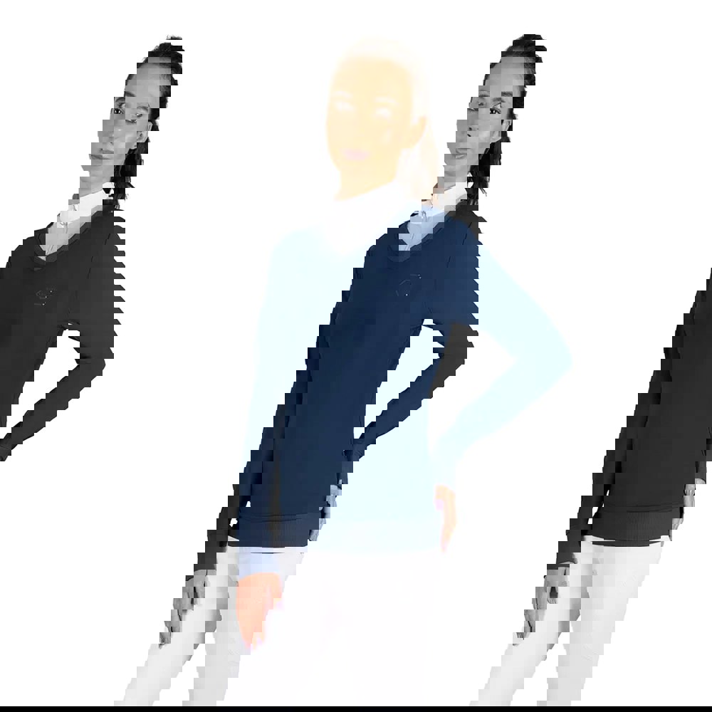The Coldstream Crailing performance sweater top is made from cotton with a soft-touch finish. In oxford blue, it has a plain base with logo and diamante detailing for a clean, modern look. The breathable performance fabric is paired with perforated airflow and a seamless construction.