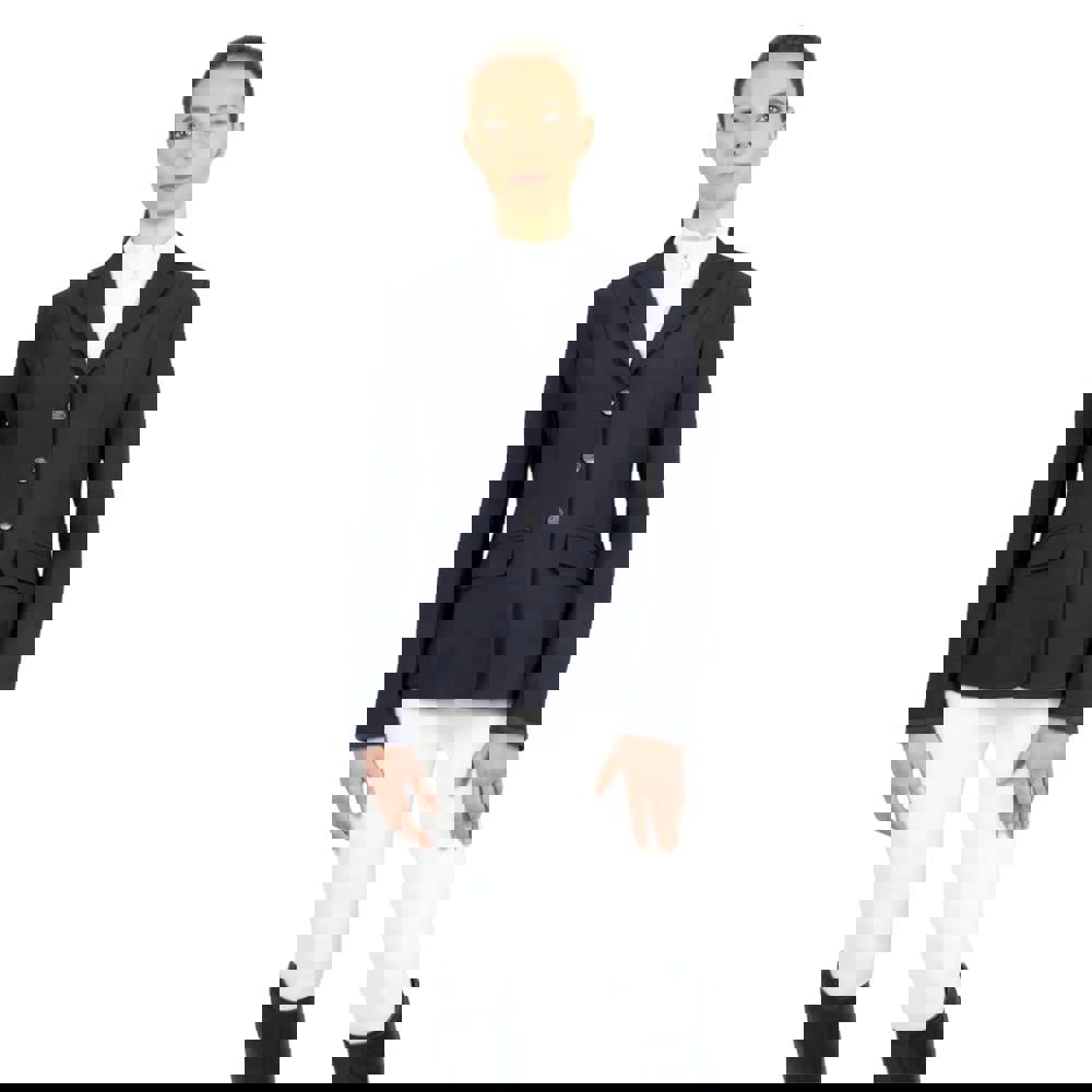 The Coldstream Womens Allanton Horse Riding Jacket is designed for horse riding, combining practical performance features with a clean, printed finish. In navy, it offers a smart look with a lapel neckline and long sleeves, making it a considered choice for time in the saddle.