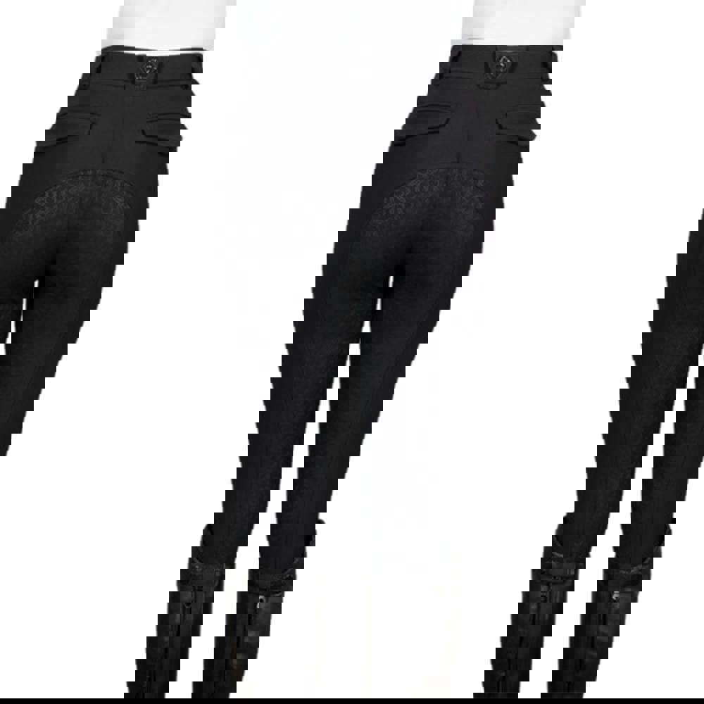 The Coldstream Womens Carham Sparkle Breeches in black are designed with a structured shape and a flattering fit. Featuring a mix of plain and patterned detailing, they are finished with logo accents, stitch detailing and diamante embellishments for a subtle sparkle.