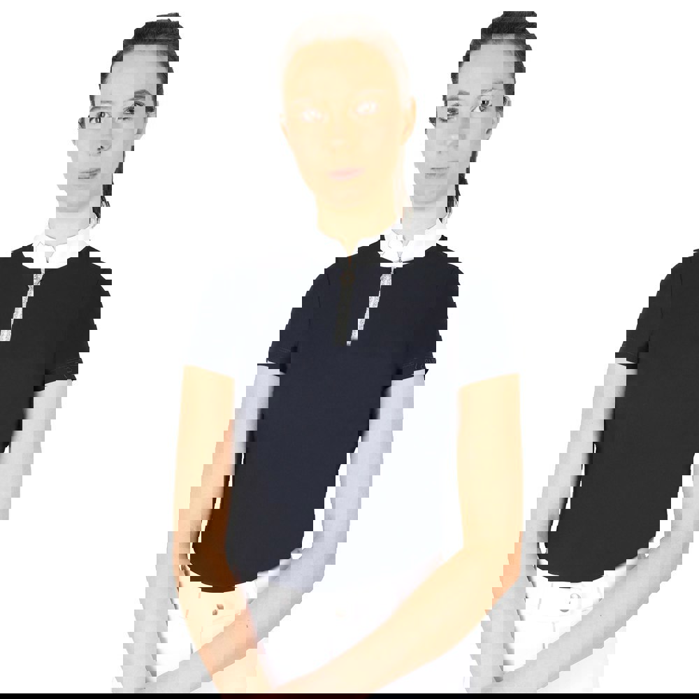 The Coldstream Womens Elrick Show Shirt in black is designed for a smart, streamlined look with a tailored fit. Featuring a high neckline and short sleeves, it offers a neat silhouette that suits show-day wear while remaining easy to style.