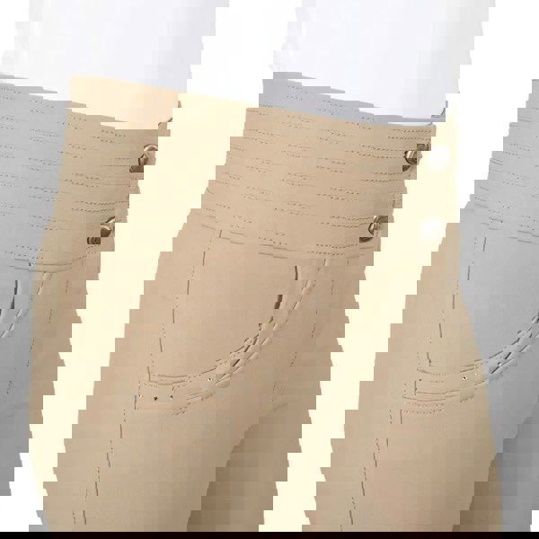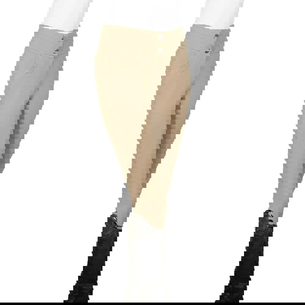 The Coldstream Womens Fenham Diamante Breeches in taupe are designed to bring a polished look to your riding wardrobe, with diamante detailing and logo styling. Created with 4 way stretch fabric technology, they are made to move with you while maintaining a flattering fit.