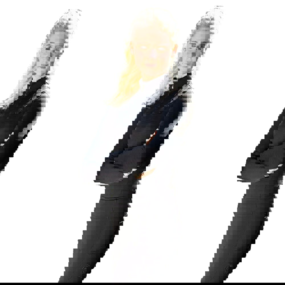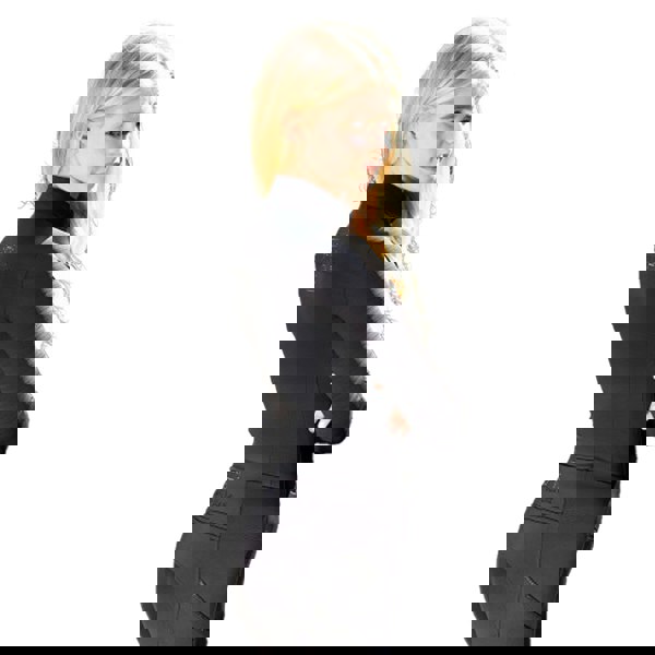 This women’s Hamilton base layer top comes in black with a logo and sparkle design. It has long sleeves and a standing collar for a clean, streamlined look that suits layering.