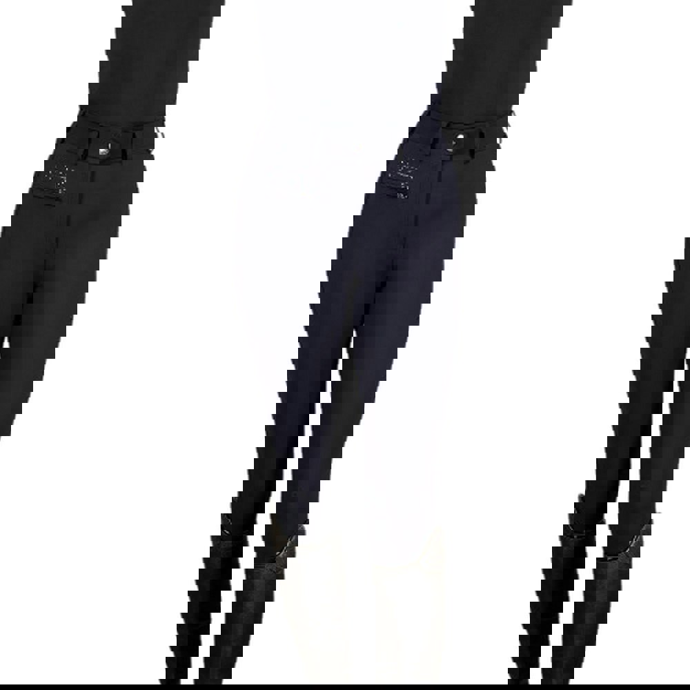 The Coldstream Womens Hamilton Sparkle Breeches in navy are designed with a smooth-touch, 4 way stretch fabric for a flexible feel. Finished with contrast detailing and sparkle accents, they offer a distinctive look while keeping the design clean and wearable.