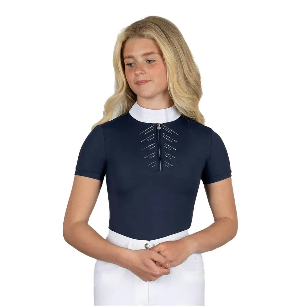 The Coldstream Womens Harthill Diamante Show Shirt in navy is designed for a smart, polished look with a clean tonal finish and diamante detailing. Featuring a high collar and a quarter zip, it offers a neat neckline that’s easy to adjust, while the pull-over style keeps the silhouette streamlined.