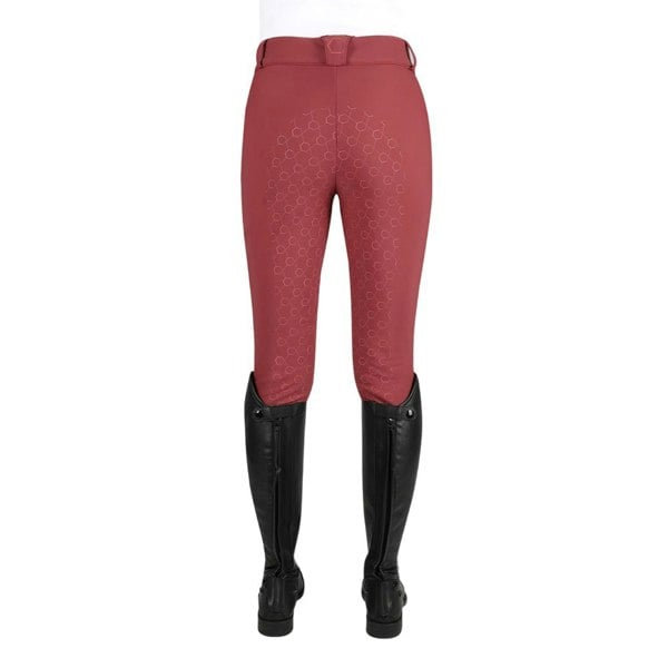 The Coldstream Womens Horse Riding Tights are designed for riding, combining a practical fit with a distinctive printed geometric hexagon logo design. Finished in burgundy, they offer a clean, modern look that works well for regular use in the saddle.